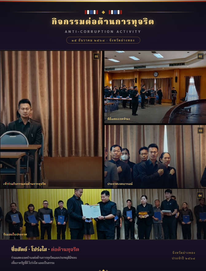 รับมอบใบประกาศนียบัตรเชิดชูเกียรติรางวัลการประเมินคุณธรรมและความโปร่งใส (ITA) และเข้าร่วมกิจกรรมต่อต้านคอรัปชั่นสากล