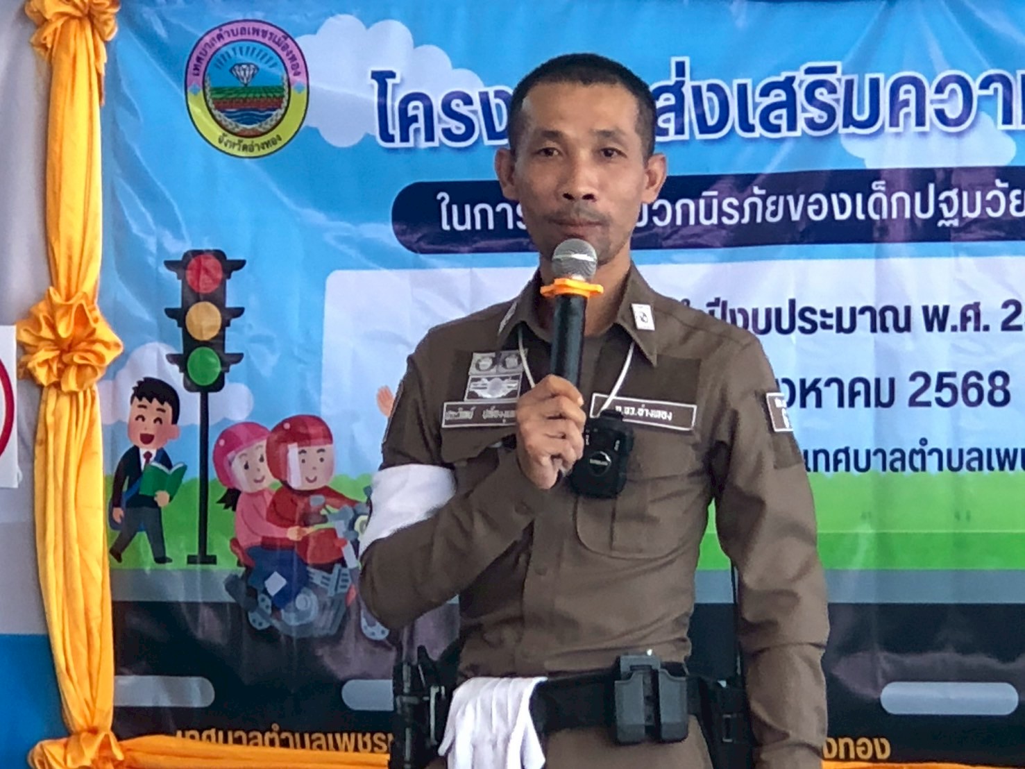 เทศบาลตำบลเพชรเมืองทอง จัดกิจกรรมโครงการส่งเสริมความปลอดภัยในการสวมหมวกนิรภัยของเด็กปฐมวัยและผู้ปกครอง ประจำปีการศึกษา ๒๕๖๘ วันที่ 29 สิงหาคม 2568 ณ เทศบาลตำบลเพชรเมืองทอง โดยมีจุดมุ่งหมายเพื่อให้ความรู้เกี่ยวกับกฎจราจร การใช้รถใช้ถนนอย่างปลอดภัยรวมถึงการมีจิตสำนึกที่ดีในการใช้รถใช้ถนน และช่วยบรรเทาปัญหาจราจร รวมถึงนักเรียนและผู้ปกครองศูนย์พัฒนาเด็กเล็กเล็กเทศบาลตำบลเพชรเมืองทองได้สวมหมวกนิรภัยที่ได้มาตรฐานขณะเดินทางด้วยรถจักรยานยนต์ โดยมีผู้เช้ารับการอบรมทั้งสิ้น ๖๖ คน เป็นเด็กนักเรียนจำนวน ๓๓ คนและผู้ปกครองจำนวน ๓๓ คน