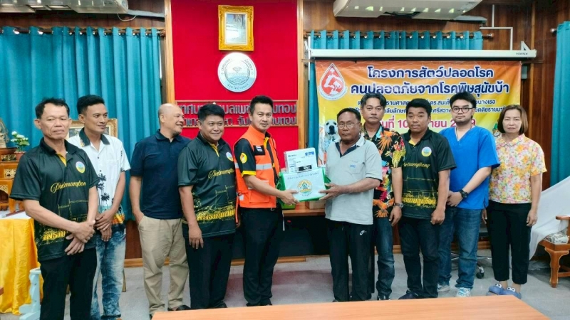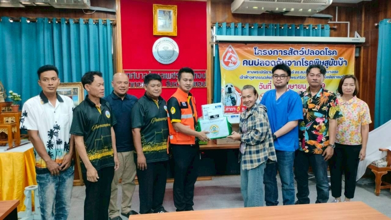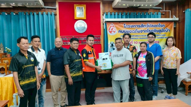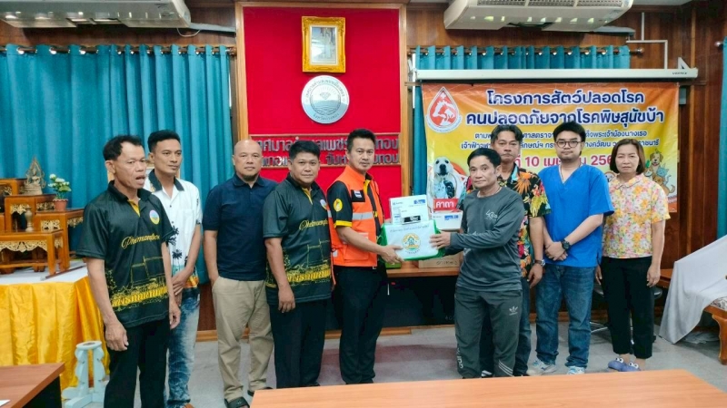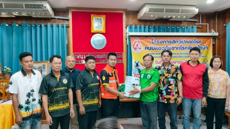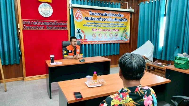วันที่ 10 เมษายน 2569 เทศบาลตำบลเพชรเมืองทอง ร่วมกับปศุสัตว์อำเภอแสวงหา ดำเนินโครงการสัตว์ปลอดโรค คนปลอดภัย จากโรคพิษสุนัขบ้าฯ ประจำปีงบประมาณ 2569 เพื่อดำเนินการฉีดวัคซีนป้องกันโรคพิษสุนัขบ้าให้สุนัขและแมวในพื้นที่ในเขตเทศบาลตำบลเพชรเมืองทอง