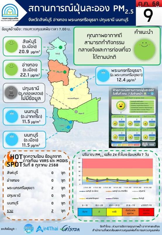 คุณภาพอากาศประจำวันที่ 9 ก.ค. 2568 |