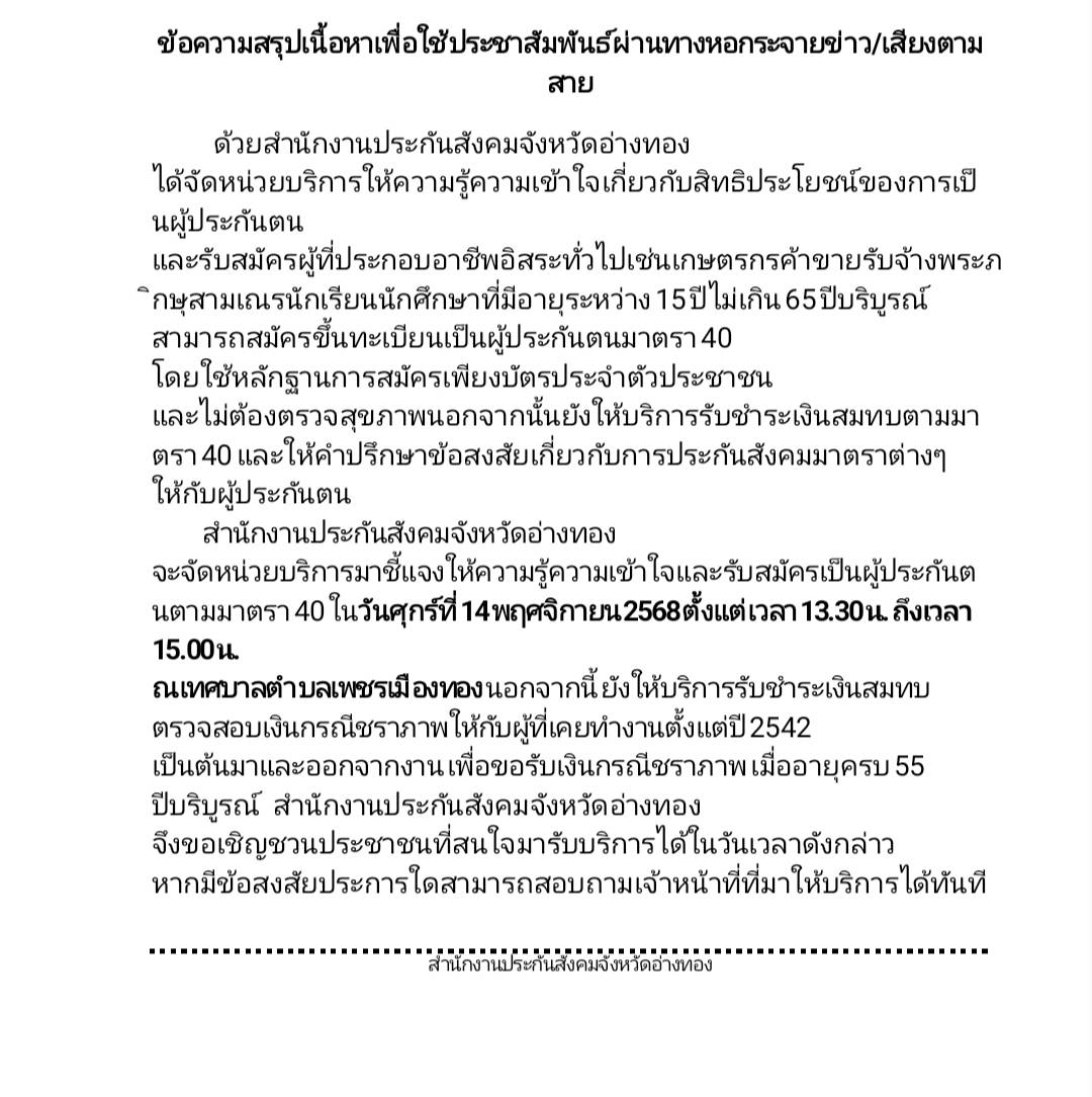 ประชาสัมพันธ์บริการนอกสถานที่ของประกันสัมคม