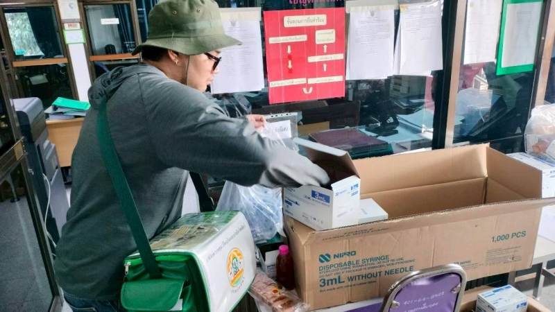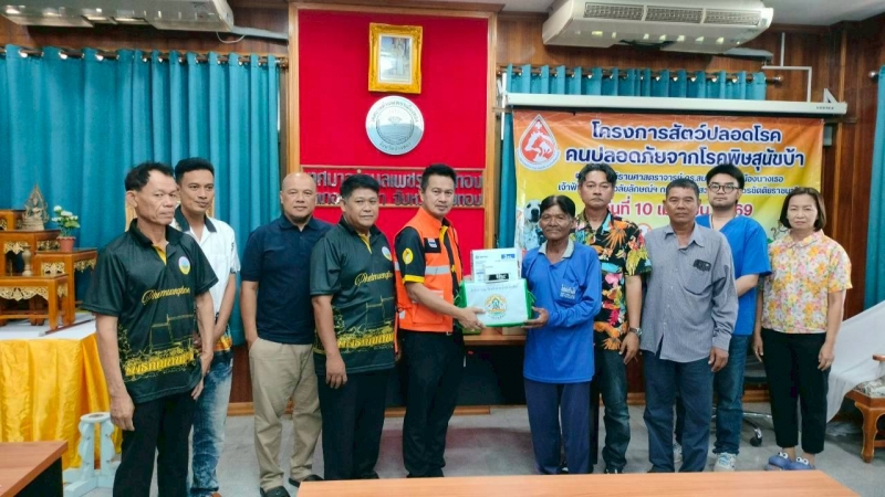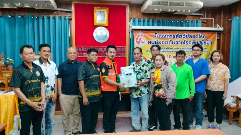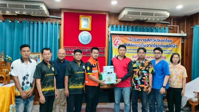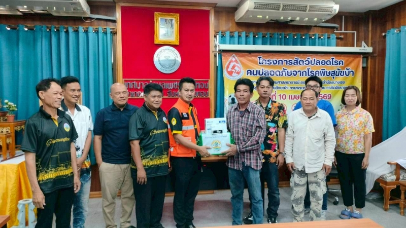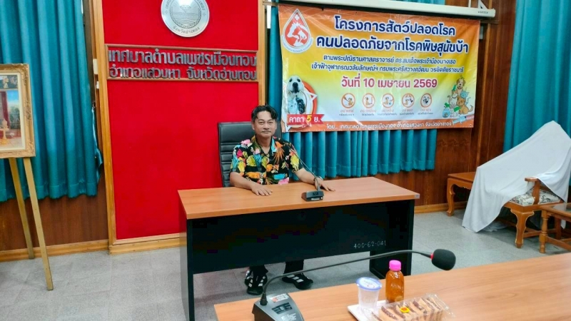 วันที่ 10 เมษายน 2569 เทศบาลตำบลเพชรเมืองทอง ร่วมกับปศุสัตว์อำเภอแสวงหา ดำเนินโครงการสัตว์ปลอดโรค คนปลอดภัย จากโรคพิษสุนัขบ้าฯ ประจำปีงบประมาณ 2569 เพื่อดำเนินการฉีดวัคซีนป้องกันโรคพิษสุนัขบ้าให้สุนัขและแมวในพื้นที่ในเขตเทศบาลตำบลเพชรเมืองทอง