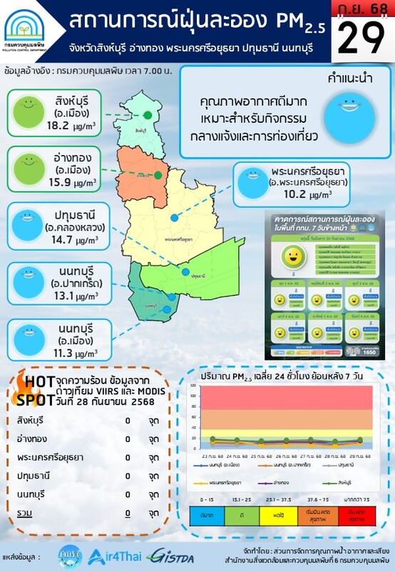 คุณภาพอากาศประจำวันที่ 29 ก.ย. 2568