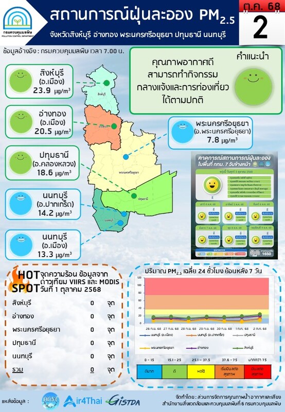คุณภาพอากาศประจำวันที่ 2 ต.ค.2568