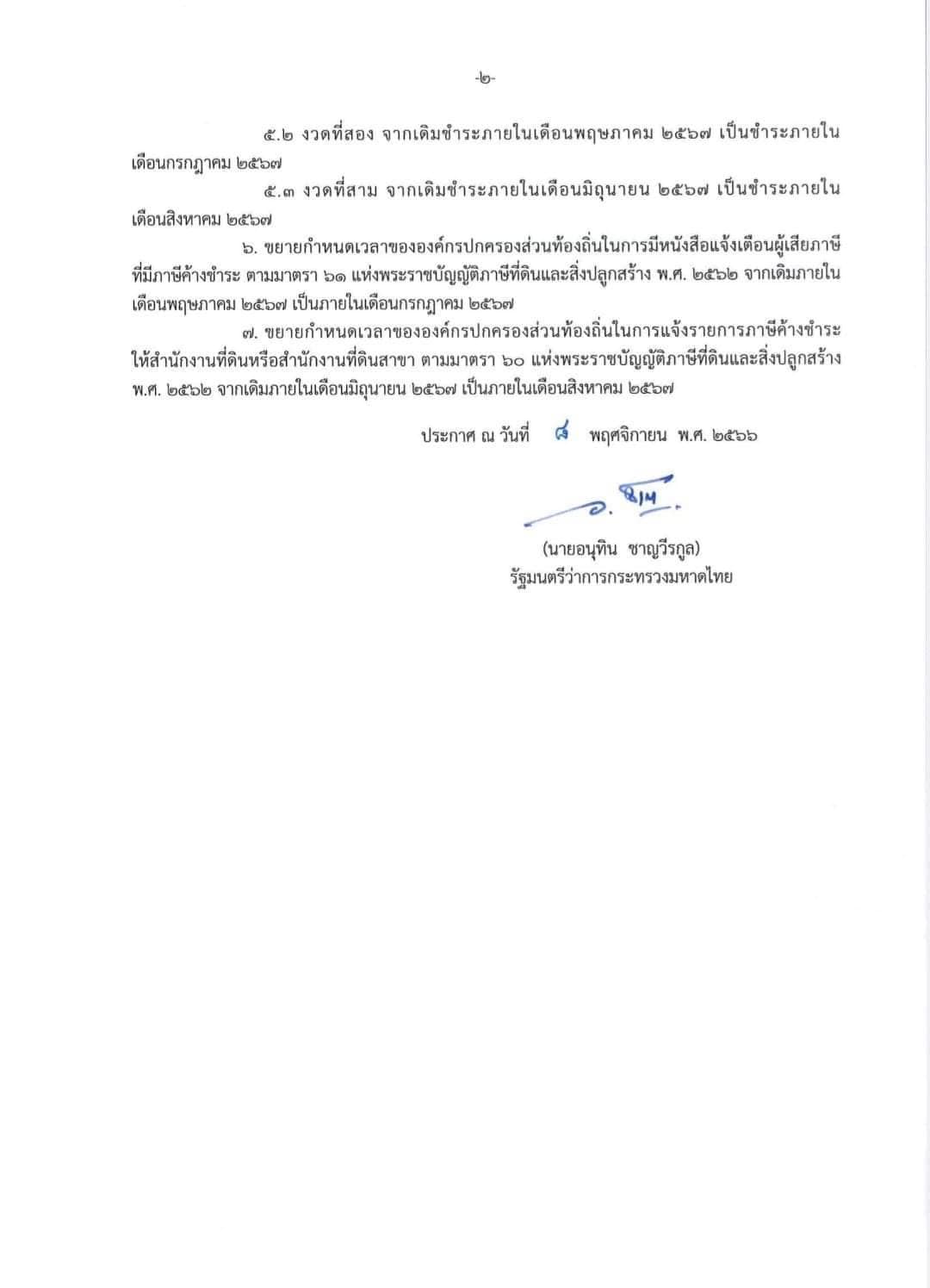 การขยายเวลาการจัดเก็บภาษีที่ดินและสิ่งปลูกสร้าง ประจำปี 2567